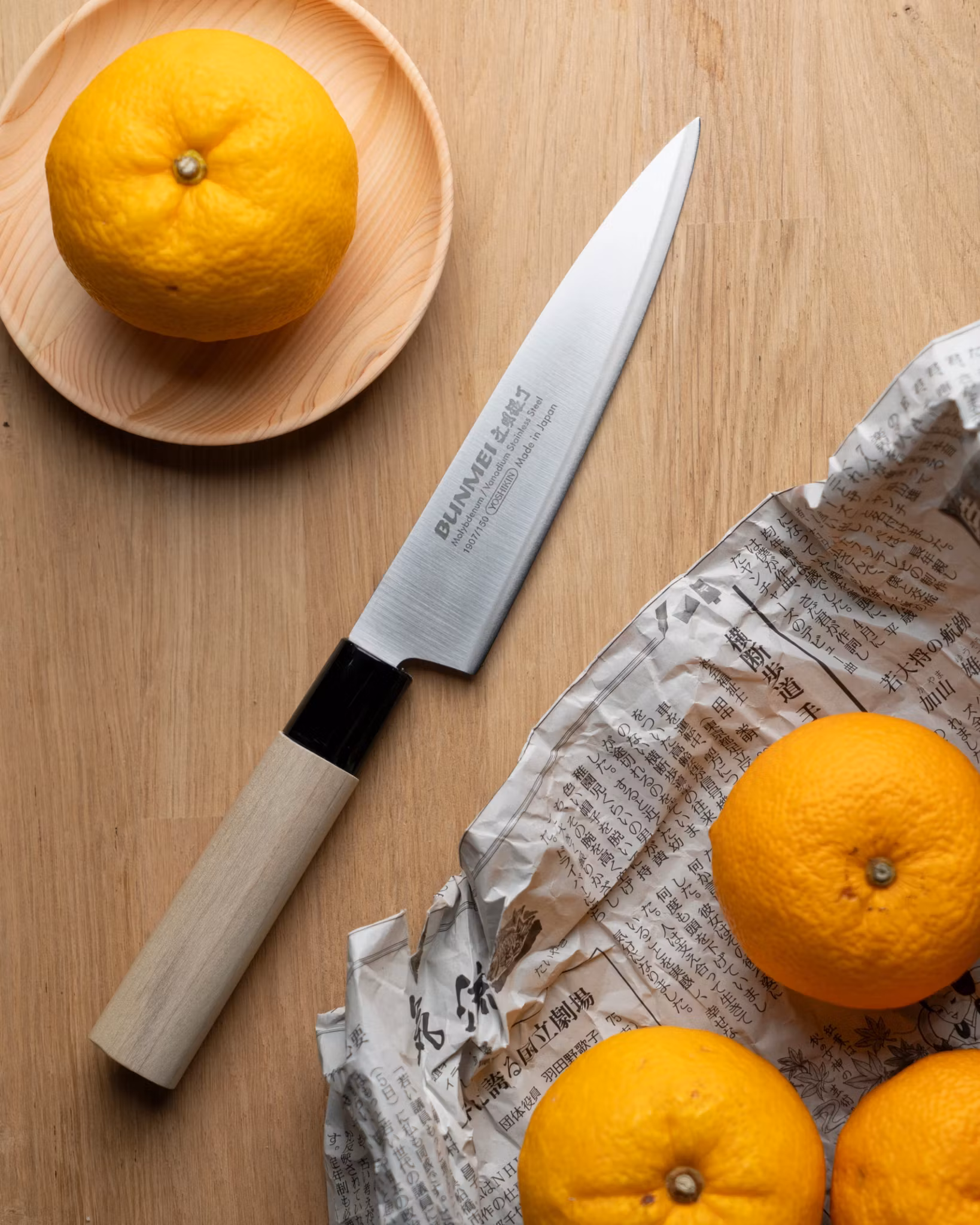 Bunmei tillverkar moderna japanska kockknivar – med klassiskt snitt. Företaget specialiserar sig på traditionella modeller och har många knivar med enkelslipat blad. De tillverkas i den ikoniska knivfabriken Yoshikin, som även ligger bakom Globalknivarna. Bunmei har samma slitstarka stål, men en mer japansk look. Förutom den speciella bladformen sticker knivarna ut med sina snygga, ljusa handtag i japansk magnolia.