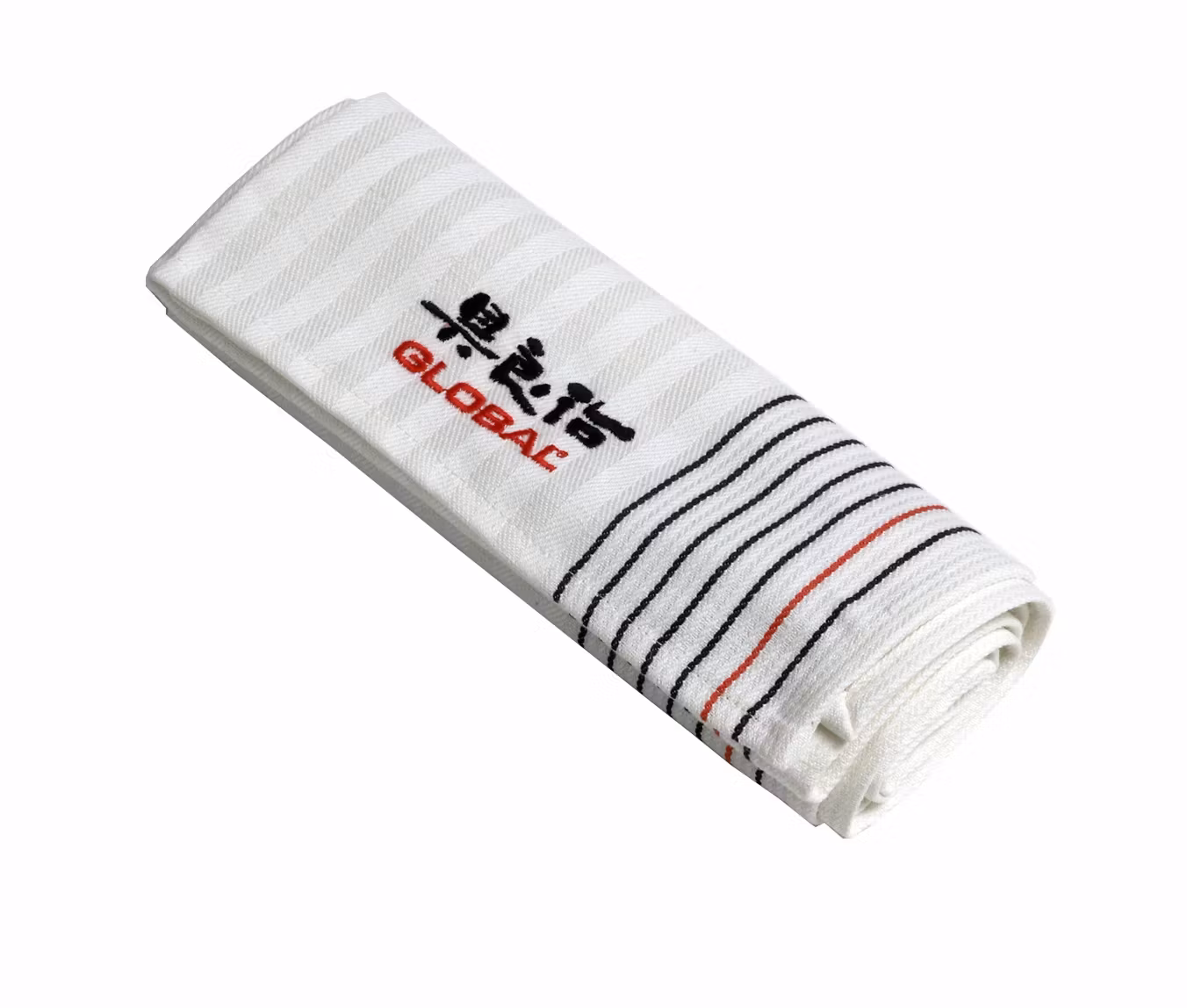 En kökshandduk, eller släng, som används flitigt i alla restaurang- och hemmakök. Handduken är märkt med Globals logotyp och är tillverkad i slitstark bomull.