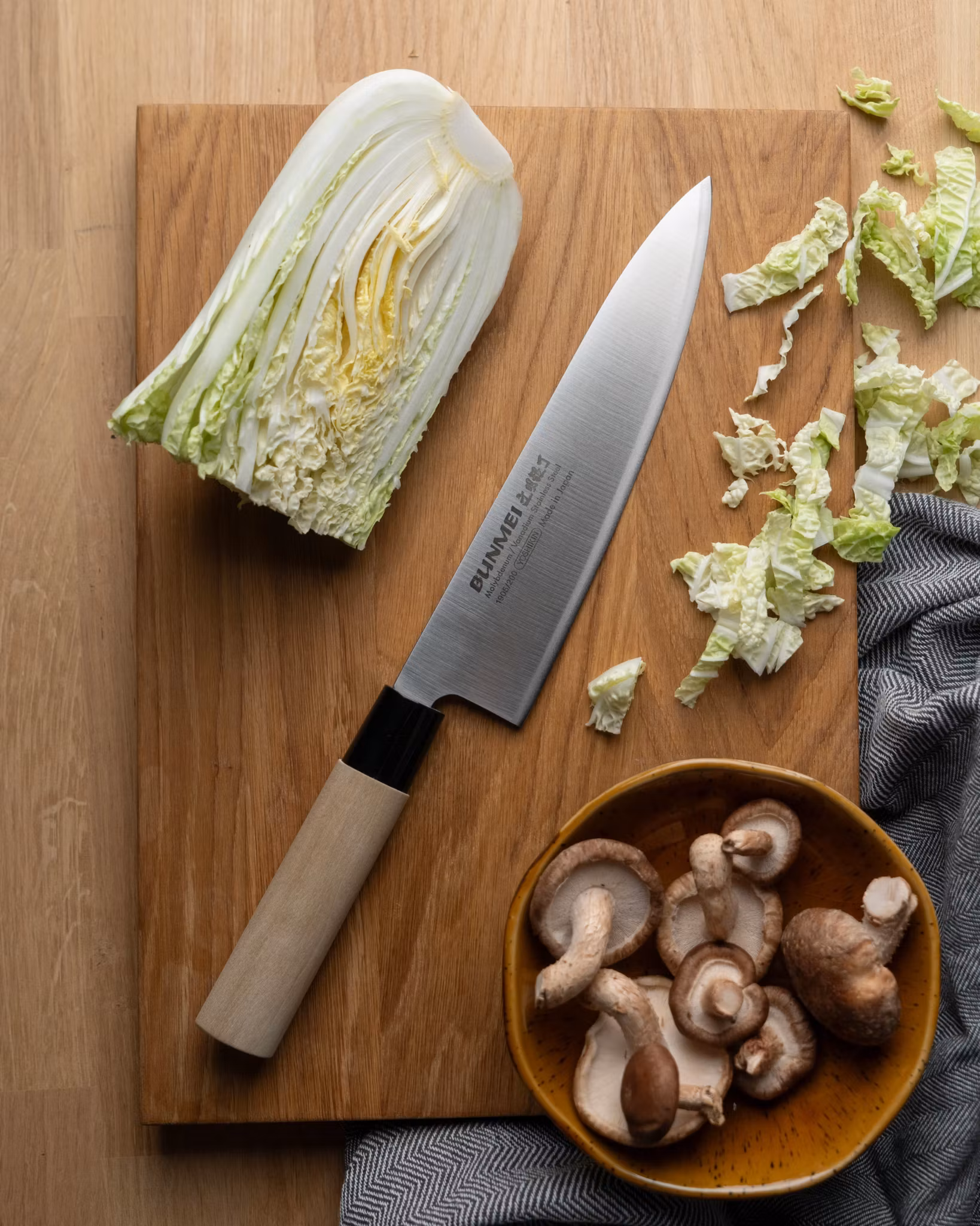 Bunmei tillverkar moderna japanska kockknivar – med klassiskt snitt. Företaget specialiserar sig på traditionella modeller och har många knivar med enkelslipat blad. De tillverkas i den ikoniska knivfabriken Yoshikin, som även ligger bakom Globalknivarna. Bunmei har samma slitstarka stål, men en mer japansk look. Förutom den speciella bladformen sticker knivarna ut med sina snygga, ljusa handtag i japansk magnolia.