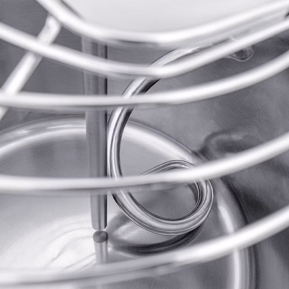 Den roterande skålen i rostfritt stål AISI 304 arbetar tillsammans med spiral och degdelare i härdat stål för jämn struktur och hög degkvalitet även vid stora satser.