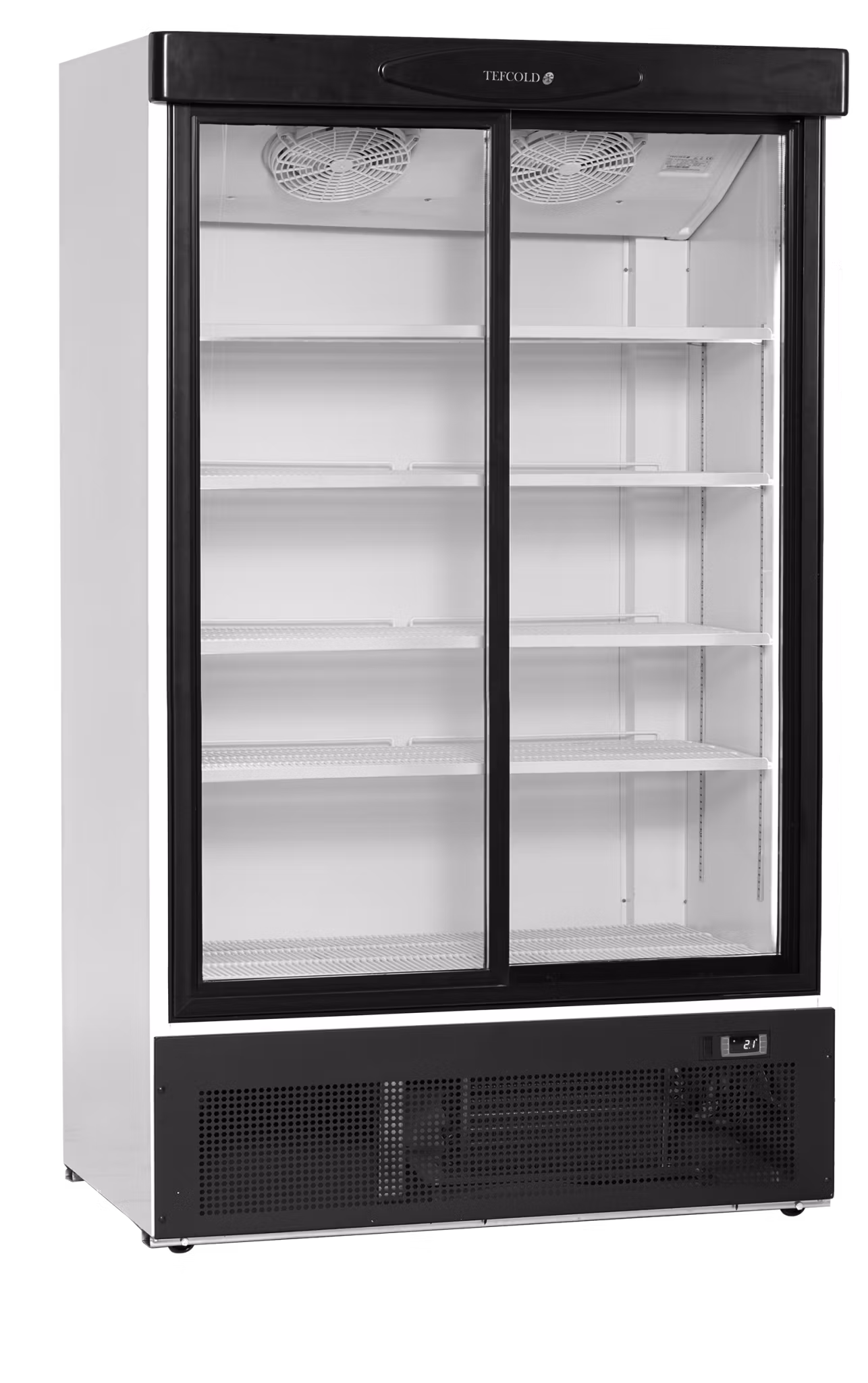FS1202S är en stilren och platsbesparande 2-dörrars displaykyl med självstängande skjutglasdörrar, framtagen för miljöer där man vill ha hög kapacitet men ett rent uttryck utan belyst topp. Den extra innerhöjden och lodräta LED-belysningen gör produkterna tydligt synliga – perfekt för butiker, närbutiker, caféer och stormarknader.
