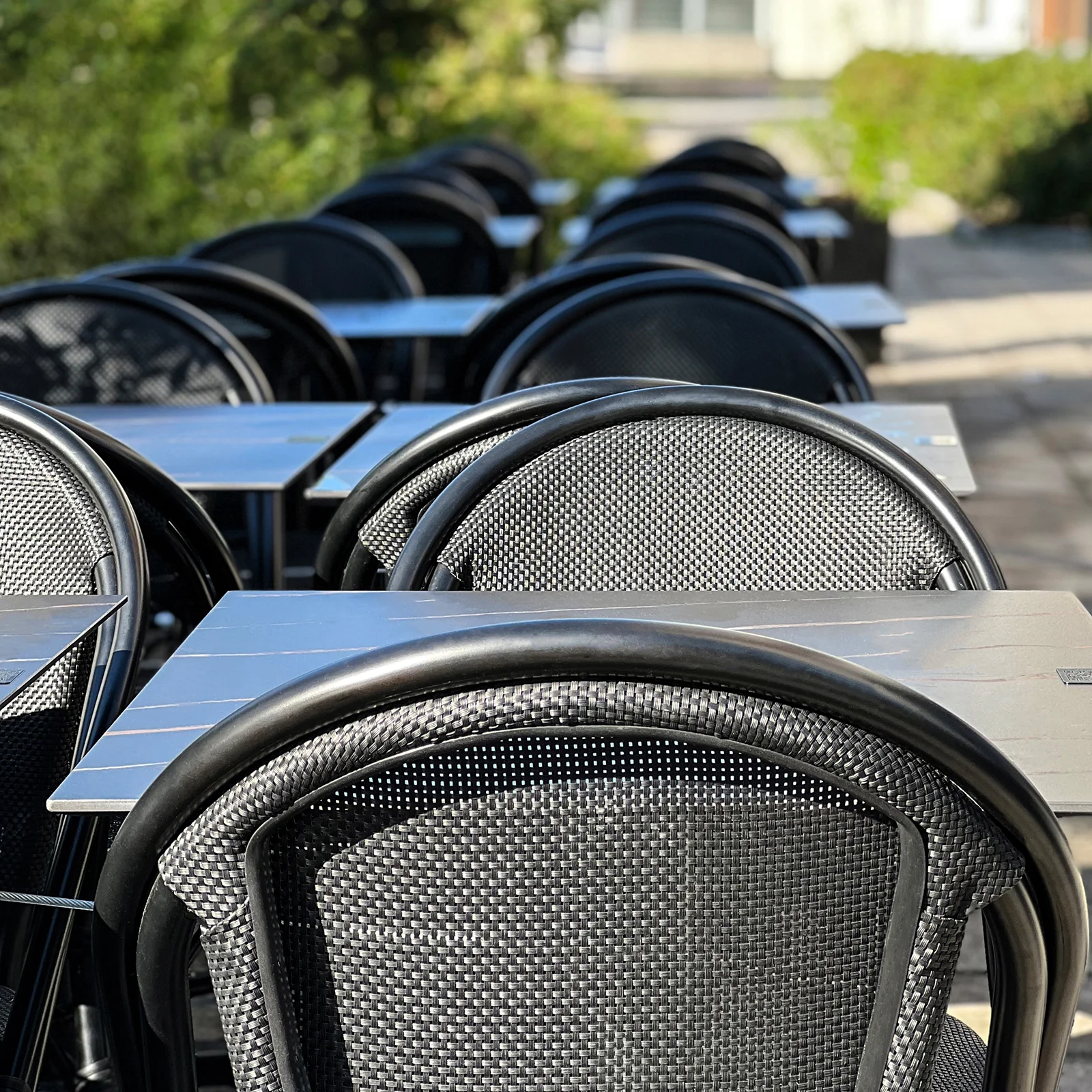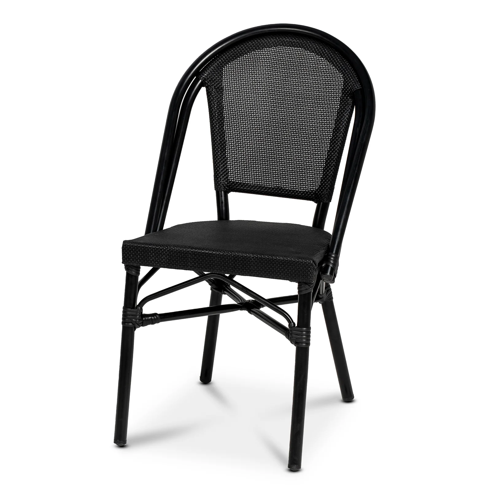 Med en något mindre detaljrikedom i designen är Menton ett prisvärt alternativ, utan att tumma på vare sig kvalitet eller hållbarhet. Stolen har en stomme av Ø 28 mm svart pulverlackerad aluminium. Sitsen är förstärkt och tillverkad i svart texteline.