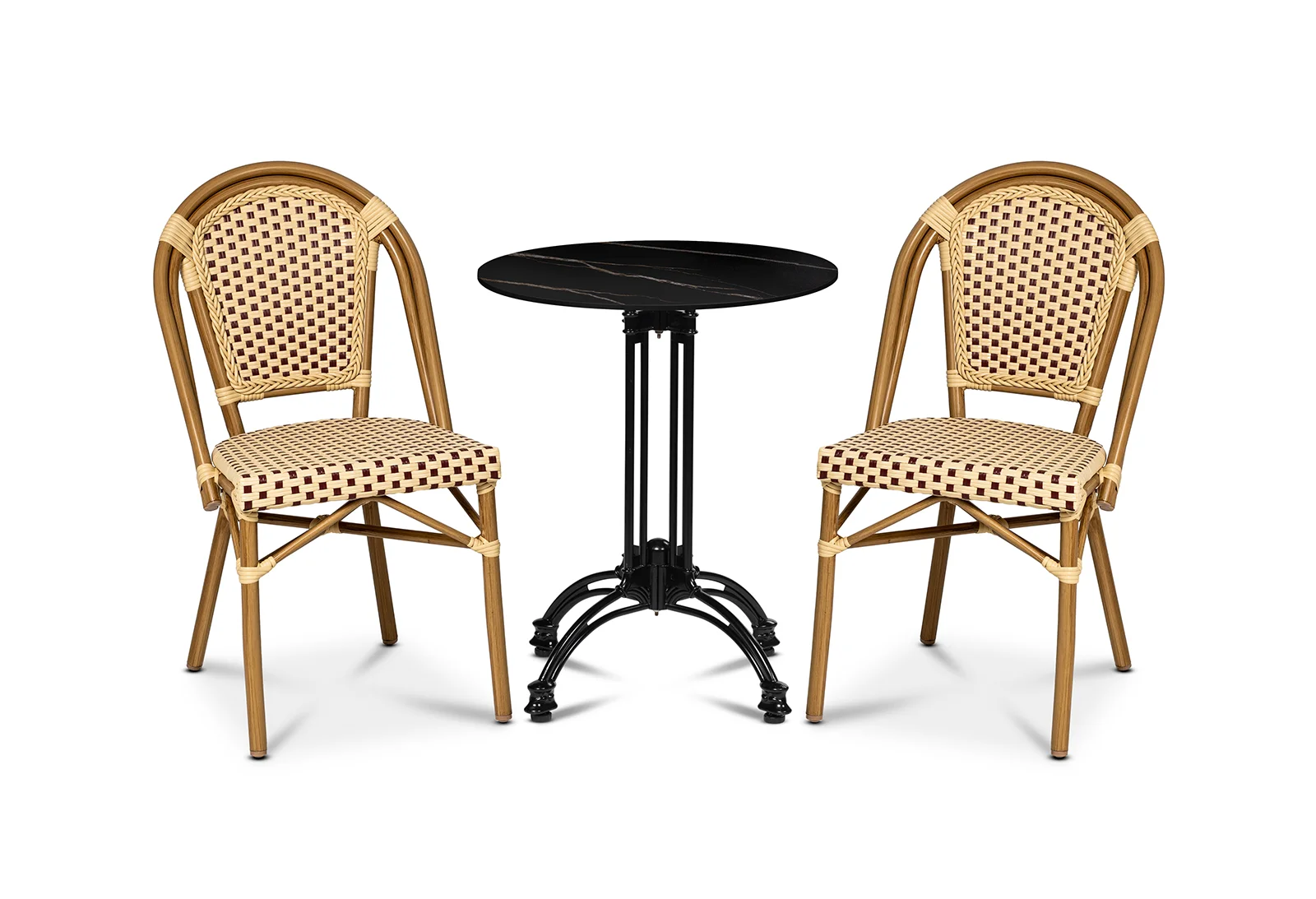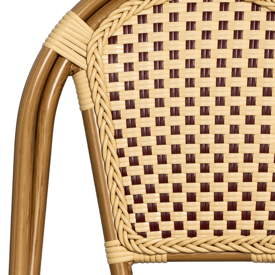 Det är få personer som lyckats undgå att sitta i en stol ur serien Paris. Många caféer och restauranger har denna bästsäljare som sitt förstahandsval. Det är inte svårt att förstå varför. Ramen är uppbyggd av en lackerad aluminiumstomme med bamboo-look på Ø 28 mm för att säkra en lägre vikt vilket gör den enkel att hantera och stapla, utan att ta upp för mycket utrymme. Sits och rygg är gjorda av vinröd/creme-färgad fiberrotting. Paris-serien är ett bekvämt och hållbart val.