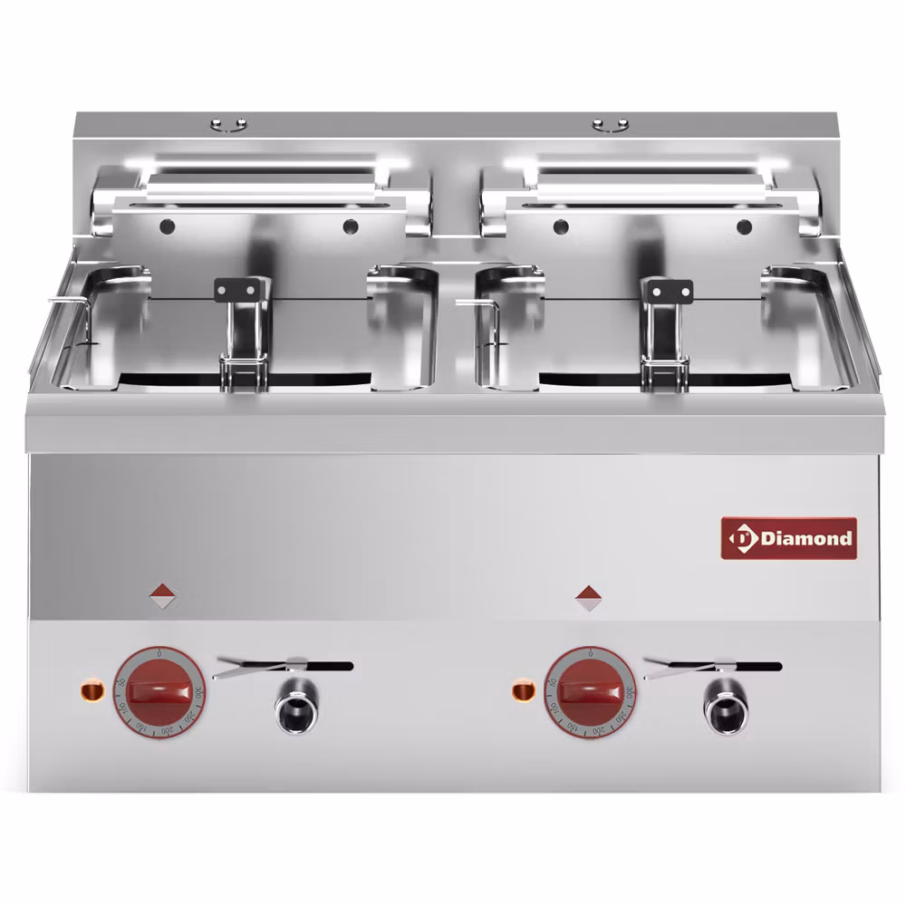 Diamond E60/F20-6T-9_9KW-N är en kraftfull elektrisk dubbelfritös för professionella kök med höga krav på kapacitet, temperaturstabilitet och driftsäkerhet. Med två separata tankar om 10 liter vardera är modellen idealisk för restauranger, storkök och verksamheter med högt flöde.